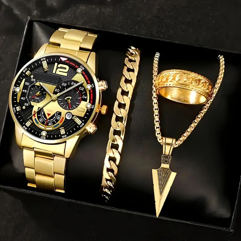 Чоловічій годинник з подарунковим набором: браслет, ланцюжок та кільце