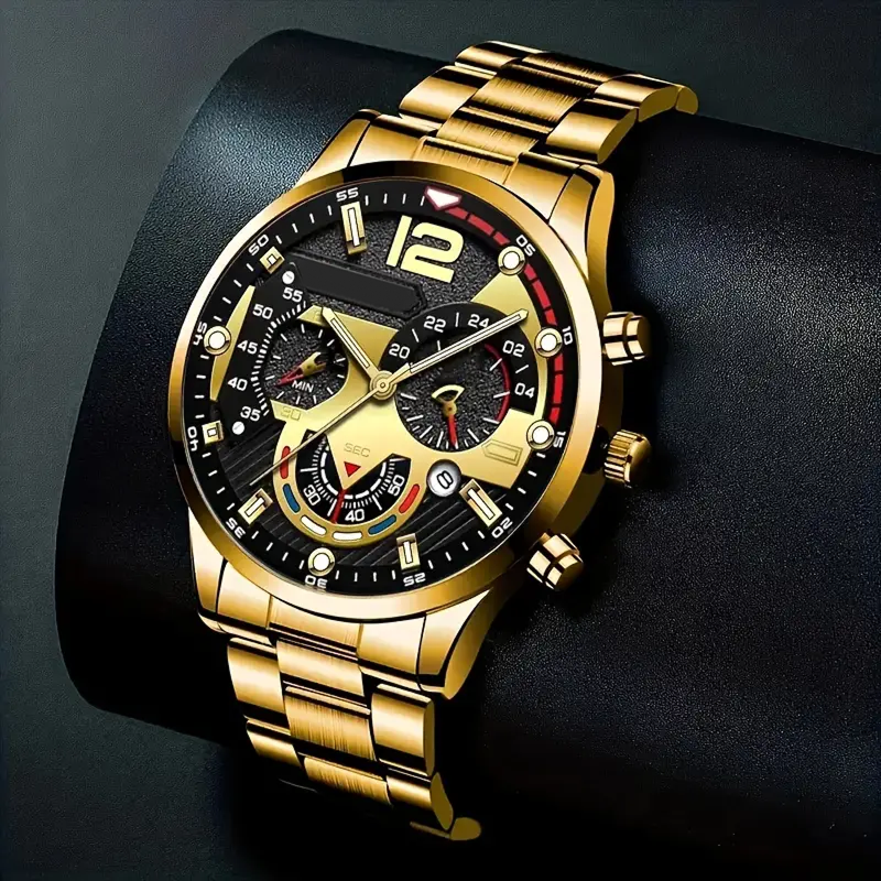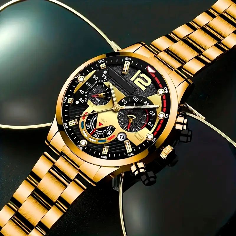 Елегантний чоловічний кварцевий годинник, який привертає увагу своїм вишуканим дизайном та витонченою стилістикою. У комплекті до годинника ви знайдете стильний браслет, ланцюжок та кільце, що додають образу особливої вишуканості та завершеності. Ідеальний аксесуар для тих, хто цінує неперевершений стиль та якість.